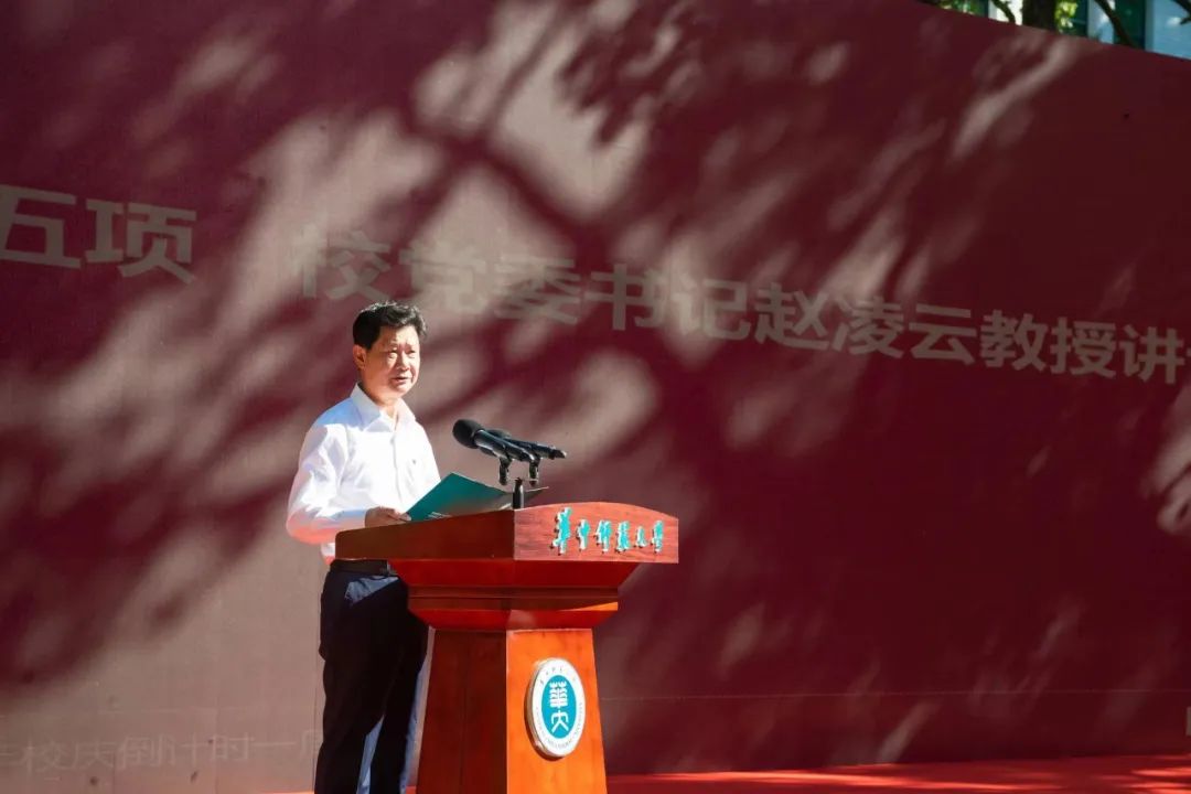 赵凌云在讲话中代表学校党委和行政,向长期以来关心支持学校发展的海内外校友、各界朋友以及全校师生表示衷心感谢。他表示,120周年校庆以“百廿风华传薪火,立德树人谱新篇”为主题,筹备120周年校庆,就是要致敬历史,深刻总结学校120年办学成就和经验,全面梳理华师历代先贤的卓越贡献,增强华师历史自信;就是要坚守初心,全面回顾华师与中华民族同呼吸、共命运的光荣历程,担当教育报国崇高使命;就是要提振信心,充分总结发生在新时代的新成就,坚定建成教师教育领先的世界一流大学的决心和勇气;就是要开创未来,激发全体华师人的荣誉感、使命感、责任感,增强学校的凝聚力、影响力,为把华师推向发展新征程奠定坚实基础。