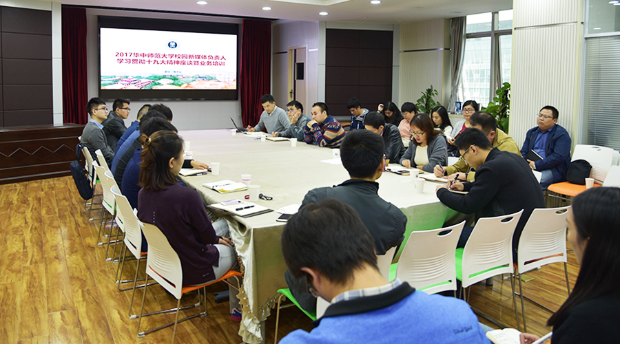 华大新媒体讯(记者 曹世生)11月1日下午,我校校园新媒体负责人学习贯彻十九大精神座谈暨业务培训会在田家炳8楼党委宣传部舆情与新媒体中心举行。党委宣传部、学工部、研工部、校团委及各学院新媒体负责人就校园新媒体如何迅速掀起学习贯彻十九大精神的热潮座谈心得,并结合学校办学思想大讨论,对学校新媒体建设管理工作提出意见和建议。