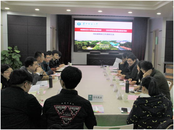 12月1日,南昌航空大学党委宣传部副部长王汉定率宣传部、团委有关人员及新媒体学生负责人来我校调研,重点就高校新媒体平台建设、传统媒体与新媒体融合、校园网络文化引领等方面进行了深入交流。