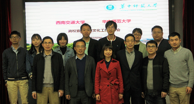 3月28日,西南交通大学党委宣传部副部长许金砖一行来我校调研,重点就构建高校“大宣传”工作体系,新闻宣传工作机制、规章制度建设,全媒体时代内外宣传工作,主页及新闻网建设,新媒体运营等方面进行座谈。校党委宣传部部长王长华、副部长冯圣兵、文学院党委副书记梁伟与会。
