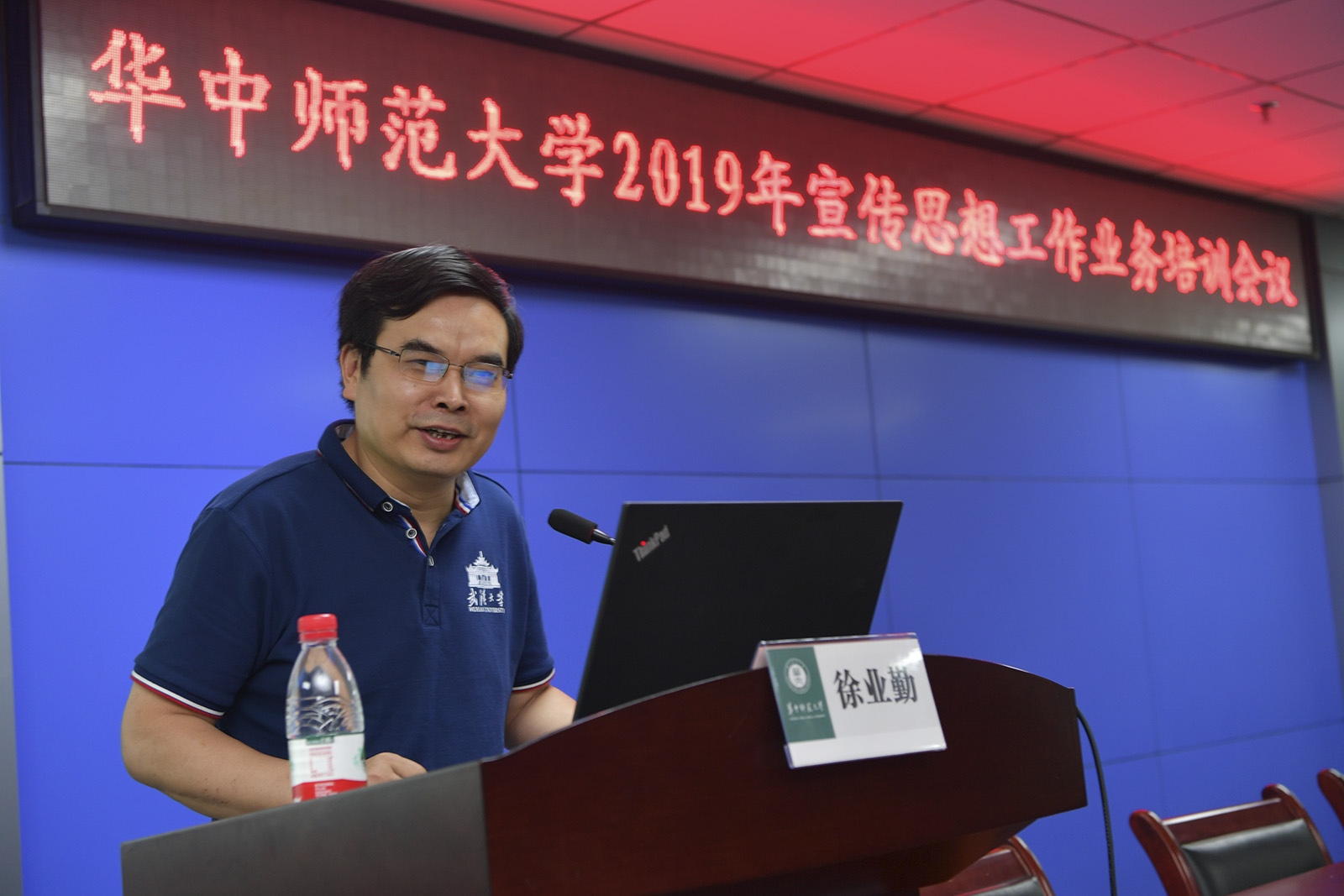 6月12日,我校2019年宣传思想工作业务培训会议在图书馆三楼学术报告厅举行。各二级单位宣传思想工作负责人、宣传干事参加。会上,武汉大学党委常委、党委宣传部部长徐业勤应邀作《全媒体时代高校网络舆论引导与舆情应对》专题报告。我校党委宣传部主要负责人总结了2018年学校宣传思想工作,并对2019年宣传思想重点工作进行了部署。