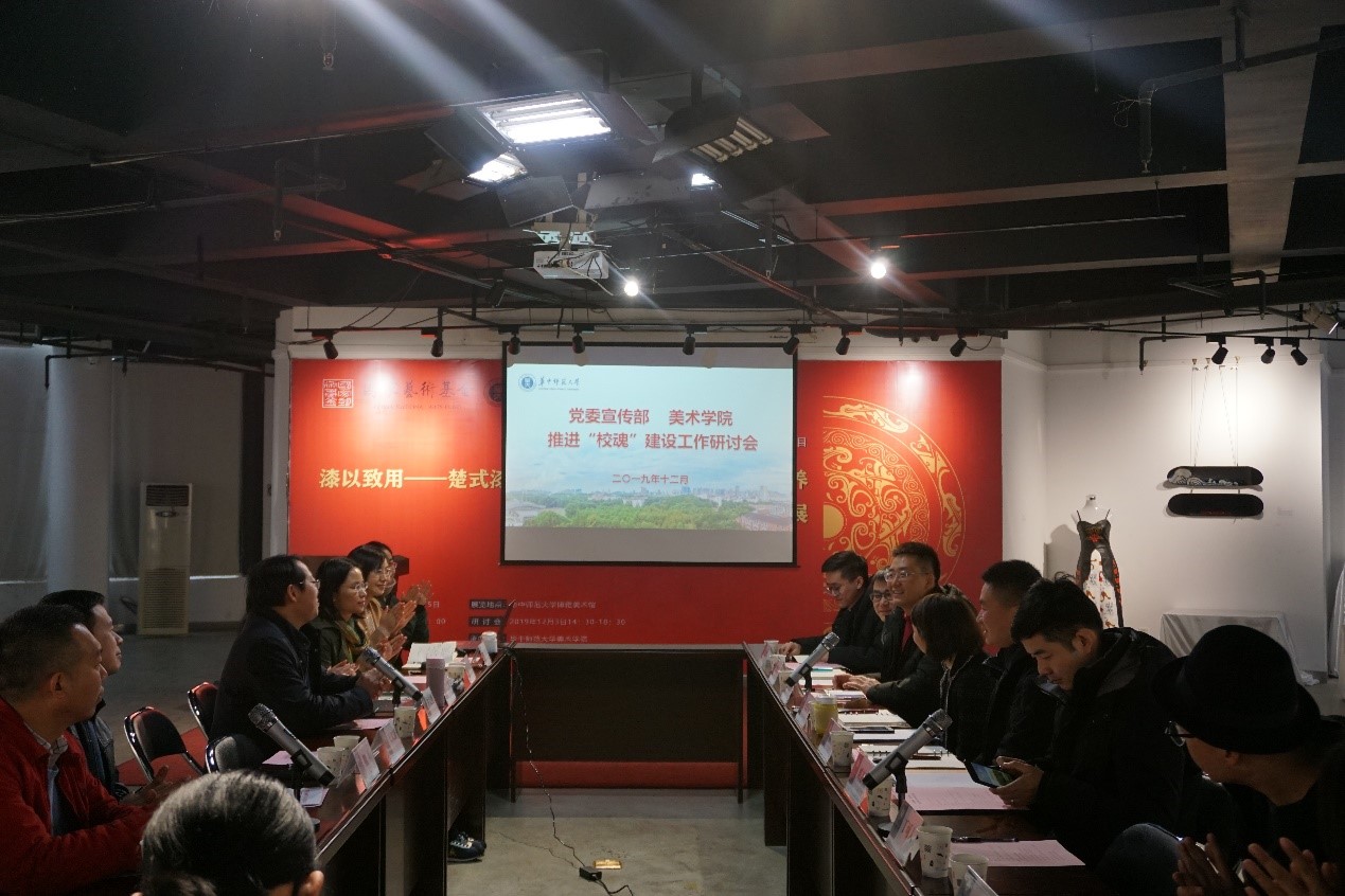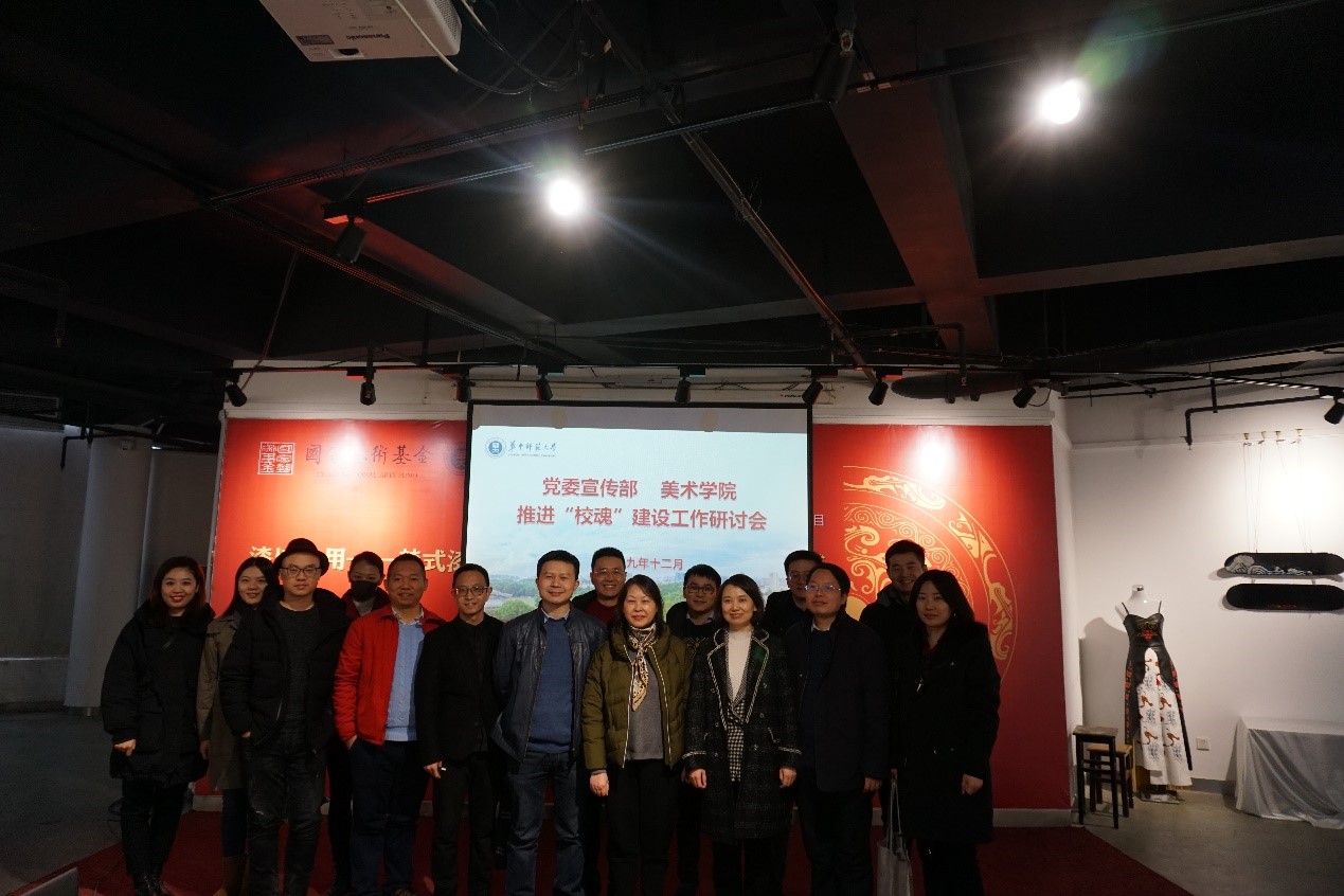 华大在线讯(通讯员 张思月)12月23日,党委宣传部、美术学院推进“校魂”建设工作研讨会于十号楼八楼展厅举行。党委宣传部部长王长华,美术学院分党委书记付义朝、院长辛艺华、副书记李宪玲、副院长王文新、副院长陈晓娟,党委宣传部陈希昌、党波涛、曹世生、刘志强、宋汉涛老师,美术学院艺术设计系各工作室主任以及教师代表参加本次研讨会。本次研讨会由美术学院党委书记付义朝主持。