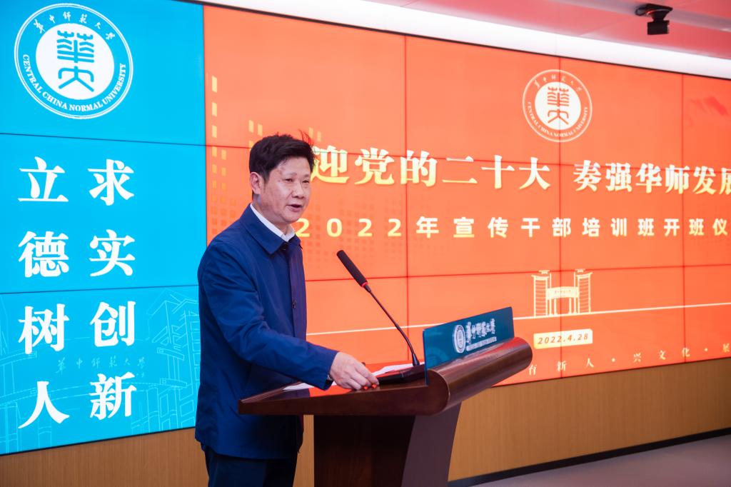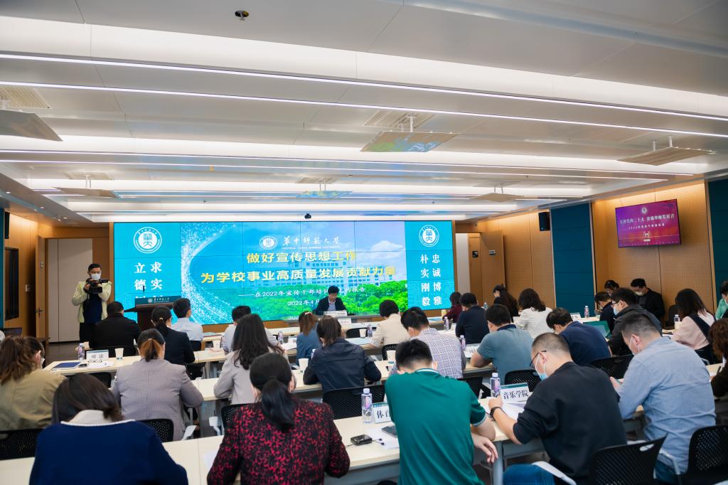 为大力提升学校宣传思想工作质量,为迎接宣传贯彻党的二十大和学校120周年校庆营造良好舆论环境,4月28日,2022年宣传干部培训班开班式暨首期培训在九号楼六楼融媒体中心联动指挥大厅举行。校党委书记赵凌云、副校长彭双阶出席,获批2021年学校二级单位融媒体中心试点单位、网络育人名号负责人,各单位宣传干事及党委宣传部全体人员参加。