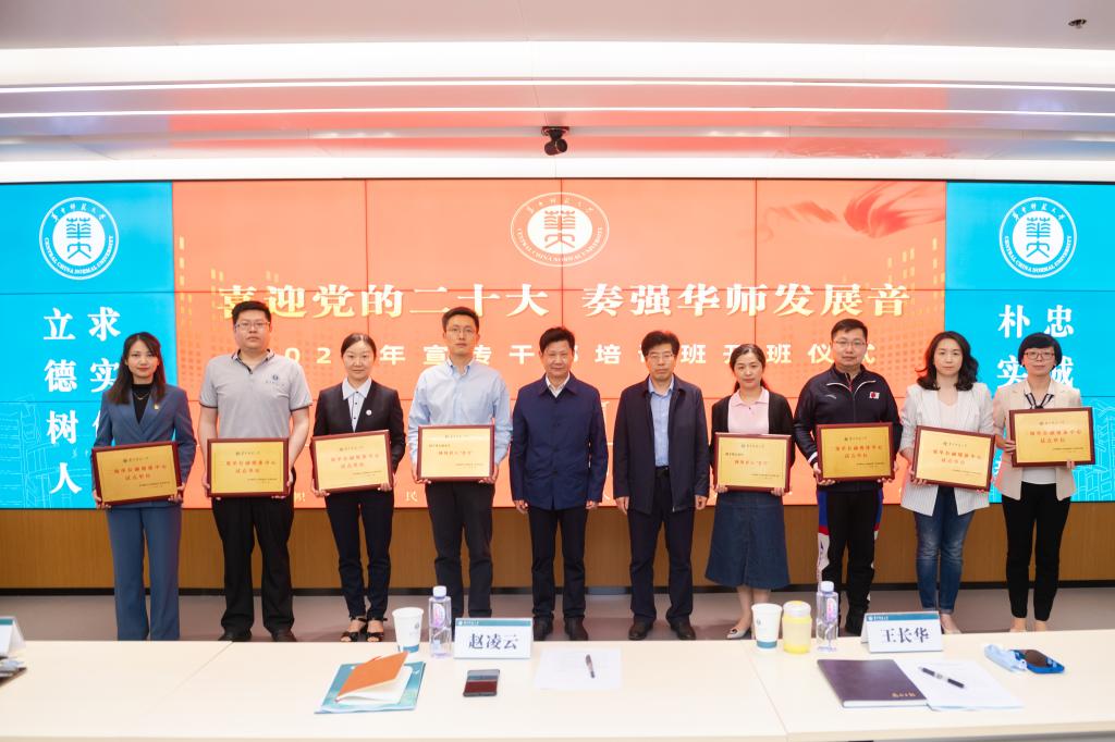 赵凌云宣布2022年宣传干部培训班开班,并在讲话中对培训班的开班表示祝贺,对宣传干部的工作表示感谢,并希望继续做好宣传思想工作,以优异的业绩迎接党的二十大召开。赵凌云与彭双阶共同为获批2021年学校二级单位融媒体中心试点单位、网络育人名号负责人授牌。