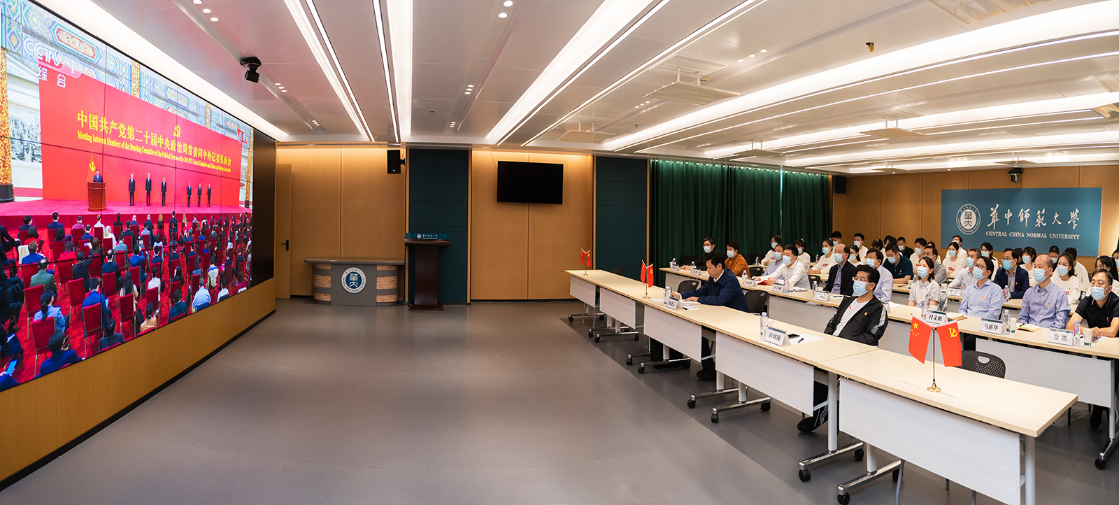 10月23日上午,校党委书记赵凌云、副校长彭双阶,学校办、机关党委等相关单位主要负责人以及“华小诗”宣讲团在九号楼融媒体中心,集中收看二十届中共中央政治局常委同中外记者见面会,认真聆听习近平同志的讲话。宣传部党支部全体在职党员参加。