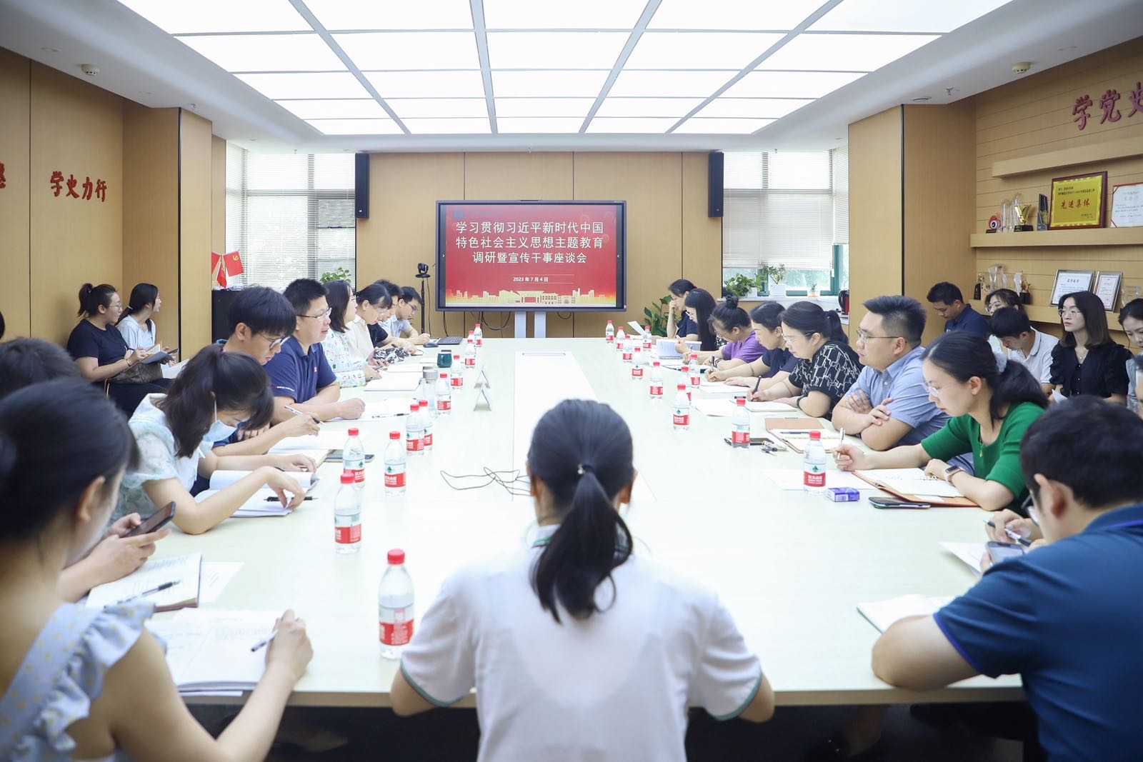 7月4日,党委宣传部在九号楼六楼融媒体中心605会议室组织召开“学习贯彻习近平新时代中国特色社会主义思想主题教育调研暨宣传干事座谈会”,与各学部学院(所、中心)宣传干事围绕宣传阵地建设、宣传队伍建设、单位网站审核制度、融媒体中心建设等宣传思想工作情况进行探讨交流,认真听取各二级单位提出的宣传思想工作需求。
