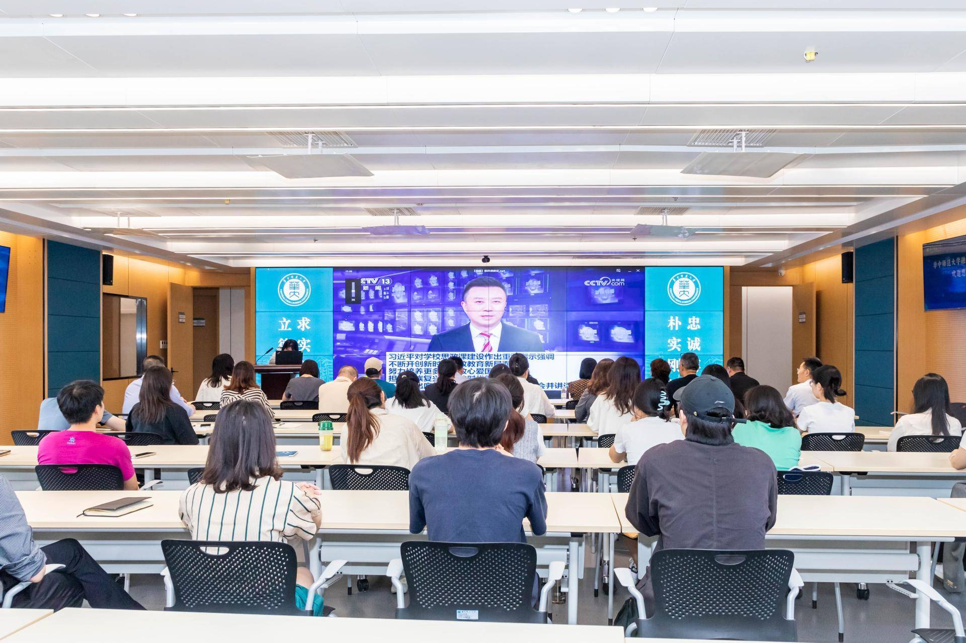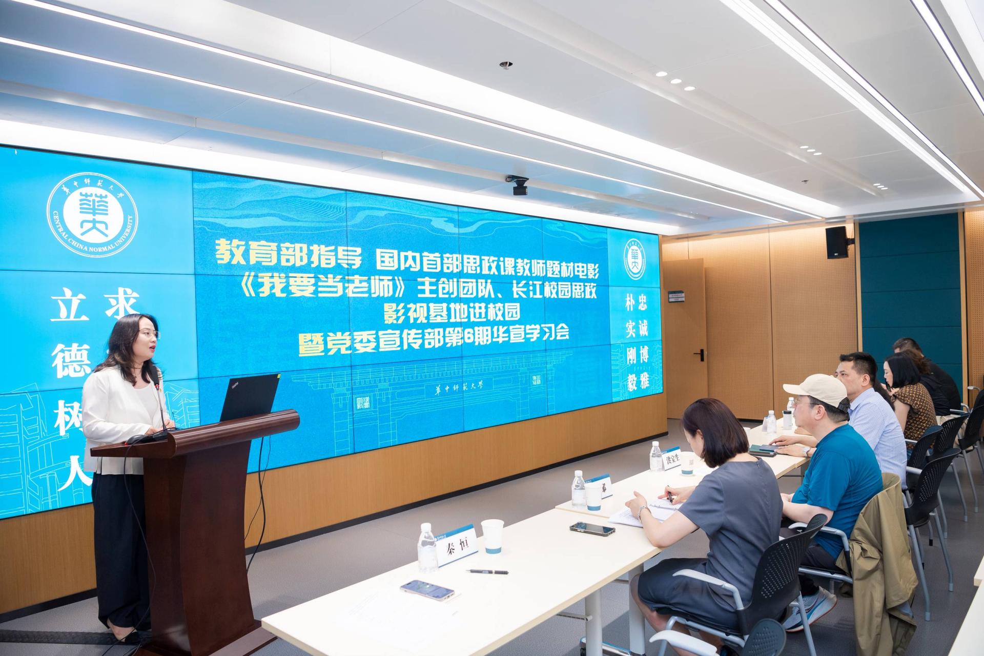 为深入学习贯彻习近平总书记对学校思政课建设作出的重要指示精神,5月22日,宣传部党支部举办第6期华宣学习会,邀请教育部指导、国内首部思政课教师题材电影《我要当老师》主创团队、长江校园思政影视基地进校园,共同探讨新时代如何弘扬教育家精神,推进“大思政课”建设。校党委副书记、纪委书记刘继文,电影《我要当老师》导演洪宝生,制片王盛、沙永珍,湖北长江电影集团公共事业管理中心主任吕那,马克思主义学院副院长李芳出席,宣传部党支部全体在职党员、人工智能学部、马克思主义学院、新闻传播学院师生代表、华大融媒学生记者团代表参加会议。会议由宣传部党支部书记、常务副部长秦恒主持。