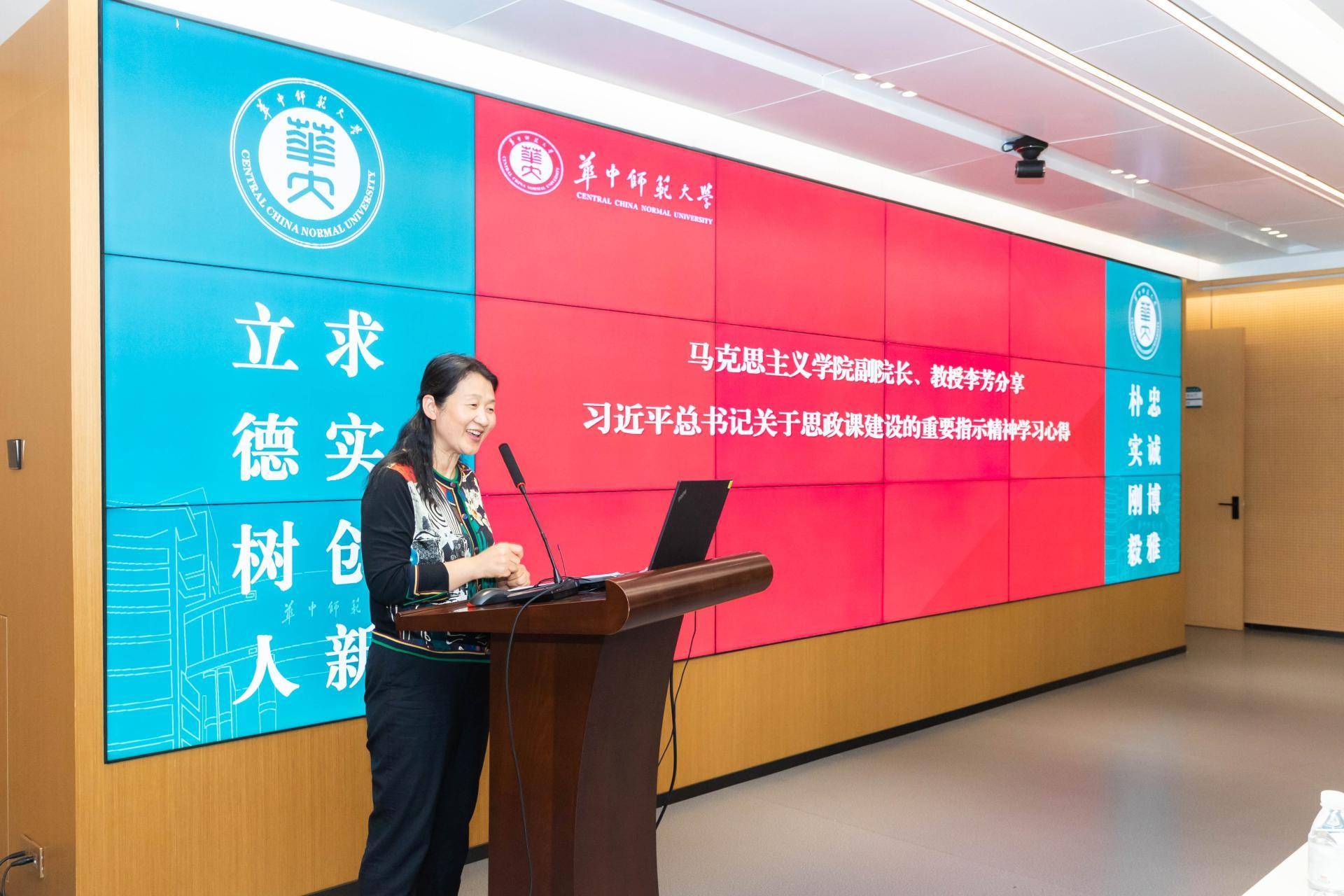 马克思主义学院副院长李芳教授分享了观影感受,并以自身的教学经历为案例,分享了成为优秀思政课教师需要具备的素养与条件。她还围绕如何学习贯彻习近平总书记关于学校思政课建设的重要指示精神,谈了自己的学习体会,勉励参会师生砥砺前行,投身思政教育。