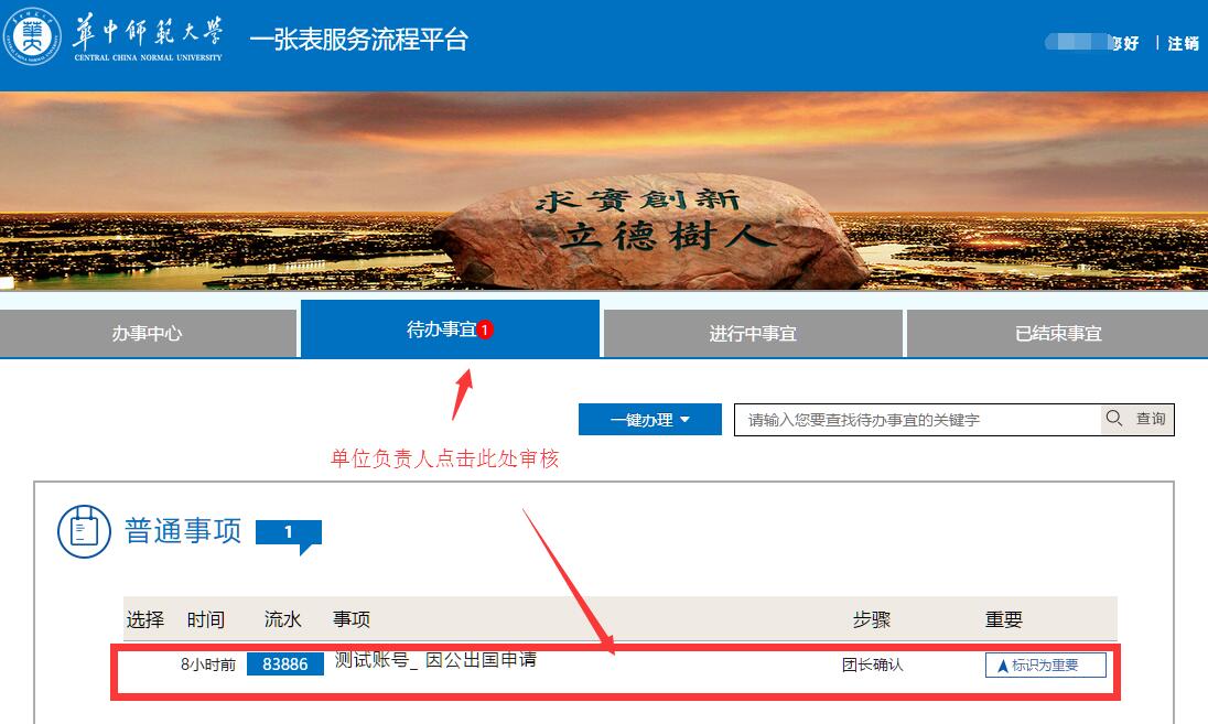 2.单位审核:所在单位主要负责人通过一张表服务流程平台审核审批。