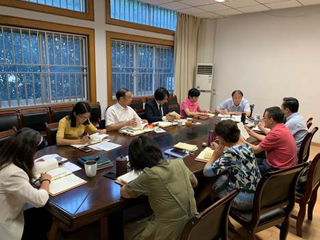 2019年9月27日下午,外国语学院党委中心组“不忘初心、牢记使命”主题教育集中“领学”在学院2楼会议室举行。外国语学院全体班子成员参加。外国语学院分党委书记李云主持,院长、分党委副书记罗良功“领学”《习近平新时代中国特色社会主义思想学习纲要》。