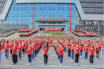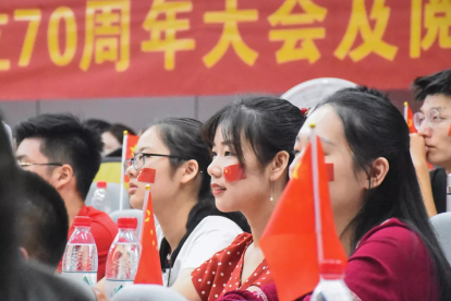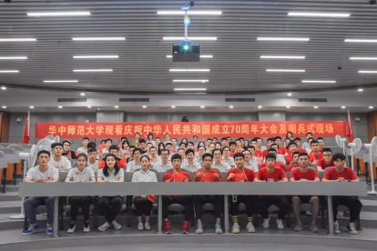 2019年10月1日清晨6时50分,为庆祝中华人民共和国成立70周年,深入开展“不忘初心、牢记使命”主题教育,华中师范大学党委在南湖综合楼广场隆重举行“我和我的祖国”主题党日活动,并组织升旗仪式、重温入党誓词、新大楼启用仪式、集体观看国庆庆祝大会等系列活动。体育学院组织师生代表参与上述活动,共庆新中国成立70华诞。