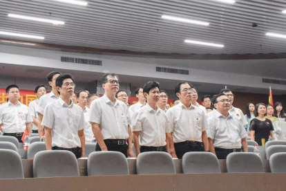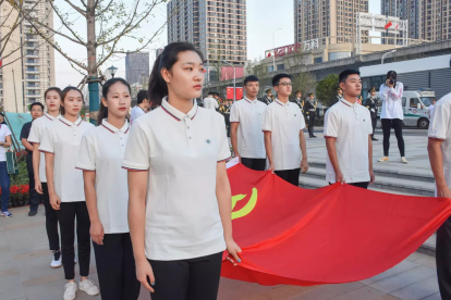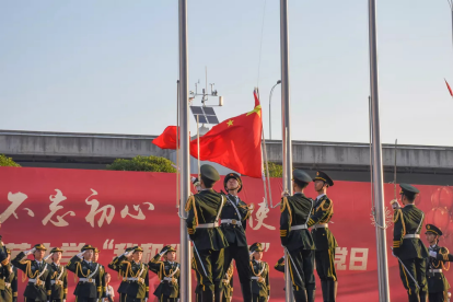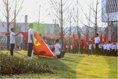 伴随着庄严肃穆的国歌声,“我和我的祖国”主题党日活动在五星红旗冉冉升起中正式开始。