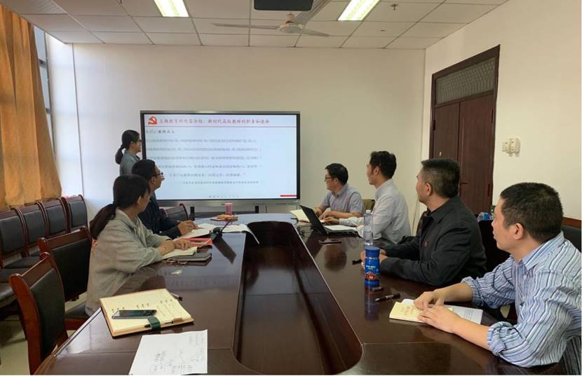 随后,支部书记吴艳同志为大家宣讲了题为“不忘初心 牢记使命:新时代高校教师的职责和使命”的专题党课。吴艳同志围绕“立德树人”的思想内涵,从牢记党员使命、恪守教育职责和践行时代精神三个方面对高校教师的职责使命和道德操守进行了全面的阐述。