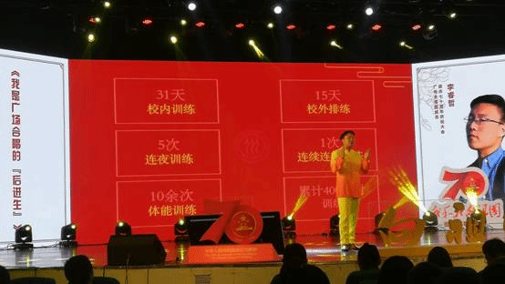 活动现场,中国人民大学的6位师生代表一一分享了他们在承担群众游行、志愿服务、广场合唱、联欢合唱等多项工作任务中的难忘故事,分享了亲历盛会的所感所悟,深刻诠释了“青春与祖国同行”的精神。其中2017级本科生赵天阳分享了观礼台现场的一个小细节,当众多观礼嘉宾纷纷把国旗脸贴贴在脸上,那一刻她深深感受到人民对国旗、对国家强烈的认同感,以及不再羞于表达的自豪感。而来自马克思主义学院的李睿哲则分享了自己历经31天校内训练、15天校外排练、5次连夜训练、1次连续连夜训练,10余次体能训练,累计数百小时的训练过程,提及终于在国庆节当天在天安门广场放开歌喉的感受时感慨万千,“这是中华盛世才有的时代强音!”