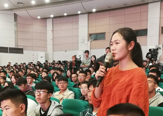 在互动环节,经济与工商管理学院学生代表刘延杰联系华中师范大学国庆期间举办的“时光书——我给未来写封信”的活动,向宣讲团提问30年后会如何对自己的下一代讲述参加国庆七十周年庆典的经历。宣讲团成员、中国人民大学教师边策亲切地用自己的育儿经历为刘延杰同学作了答复。